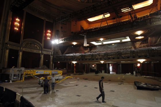 Obras en el teatro Lope de Vega, uno de los que adquirió la SGAE. / LUIS SEVILLANO