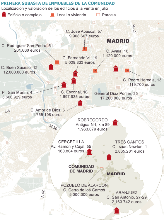 La Comunidad de Madrid planea poner a la venta de aquí a seis meses